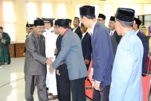 Sumbawa Besar, SR (15/07/2015) Mutasi dan pelantikan 26 pejabat struktural di lingkup Pemda Sumbawa telah dilakukan pemerintahan Drs H Jamaluddin Malik—Drs H